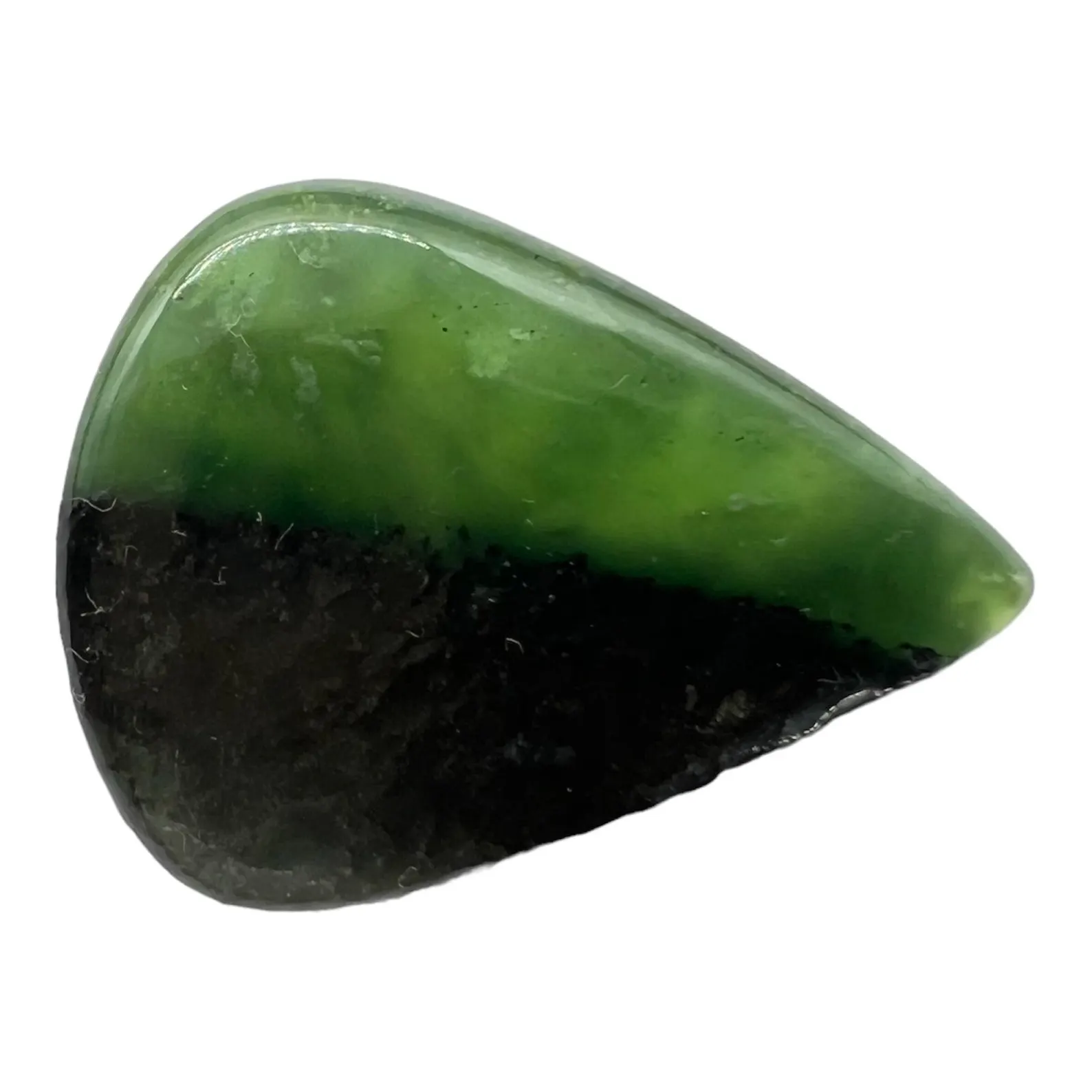 This exquisite gemstone boasts a stunning double color of green and black, with a pear-shaped serpentine design. It has a natural creation and a moderately included clarity grade, which adds to its unique charm. The gemstone is 41mm in length and 30mm in width, with a depth of 4mm. This top-quality gemstone is perfect for those who appreciate vintage pieces and is a great addition to any collection. It comes with an excellent cut grade and is a natural formation from India. The gemstone is perfect for use in jewelry and watches, and its uniqueness makes it a great conversation piece.